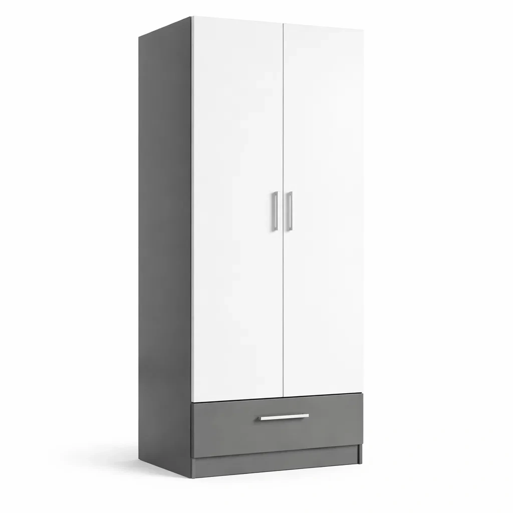 Armoire en bois blanc et gris avec 2 portes et 1 tiroir