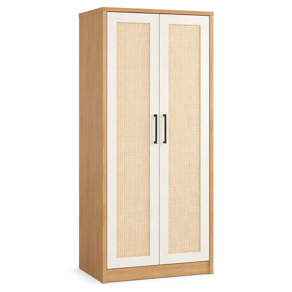 Matériau : Panneaux de particules plaqués bois et rotin naturel