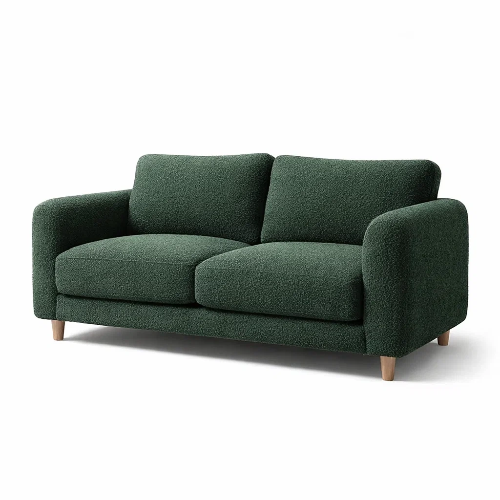 Canapé en tissu bouclé vert 2 places avec pieds en bois
