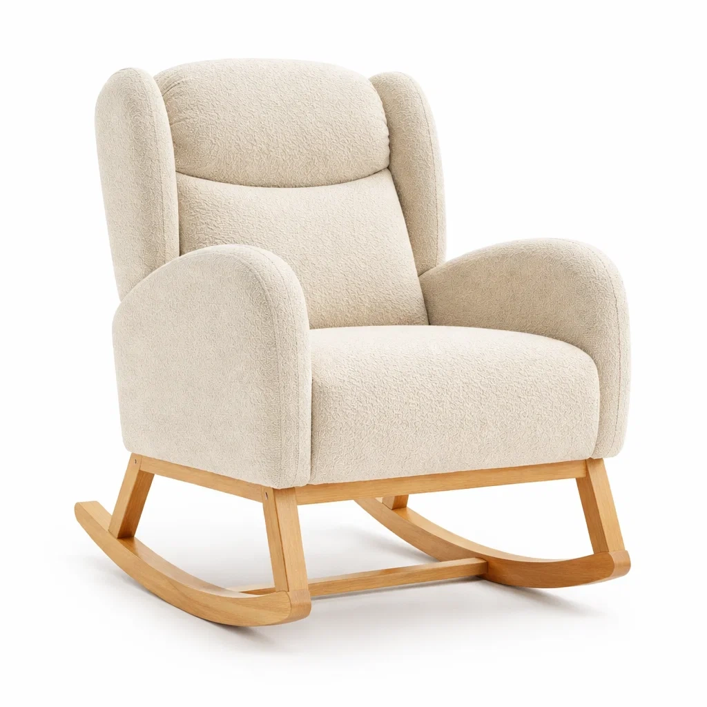 Fauteuil à bascule en bois avec revêtement en polyester beige