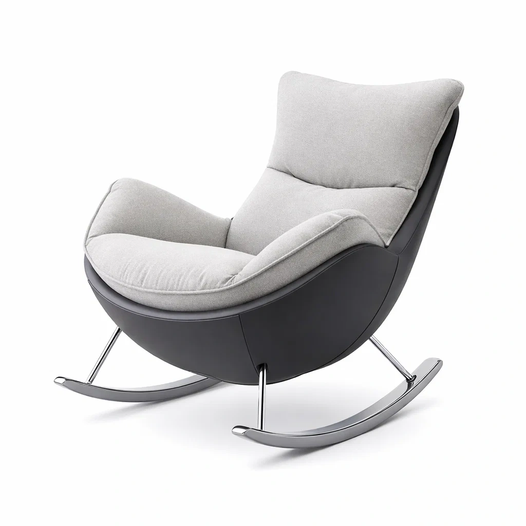 Fauteuil à bascule en tissu gris et cuir synthétique noir