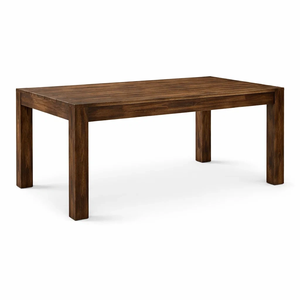 Table rectangulaire en bois d'acacia avec finition vernie.