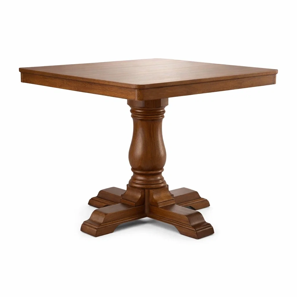 Détails de conception : Pied central sculpté, plateau carré