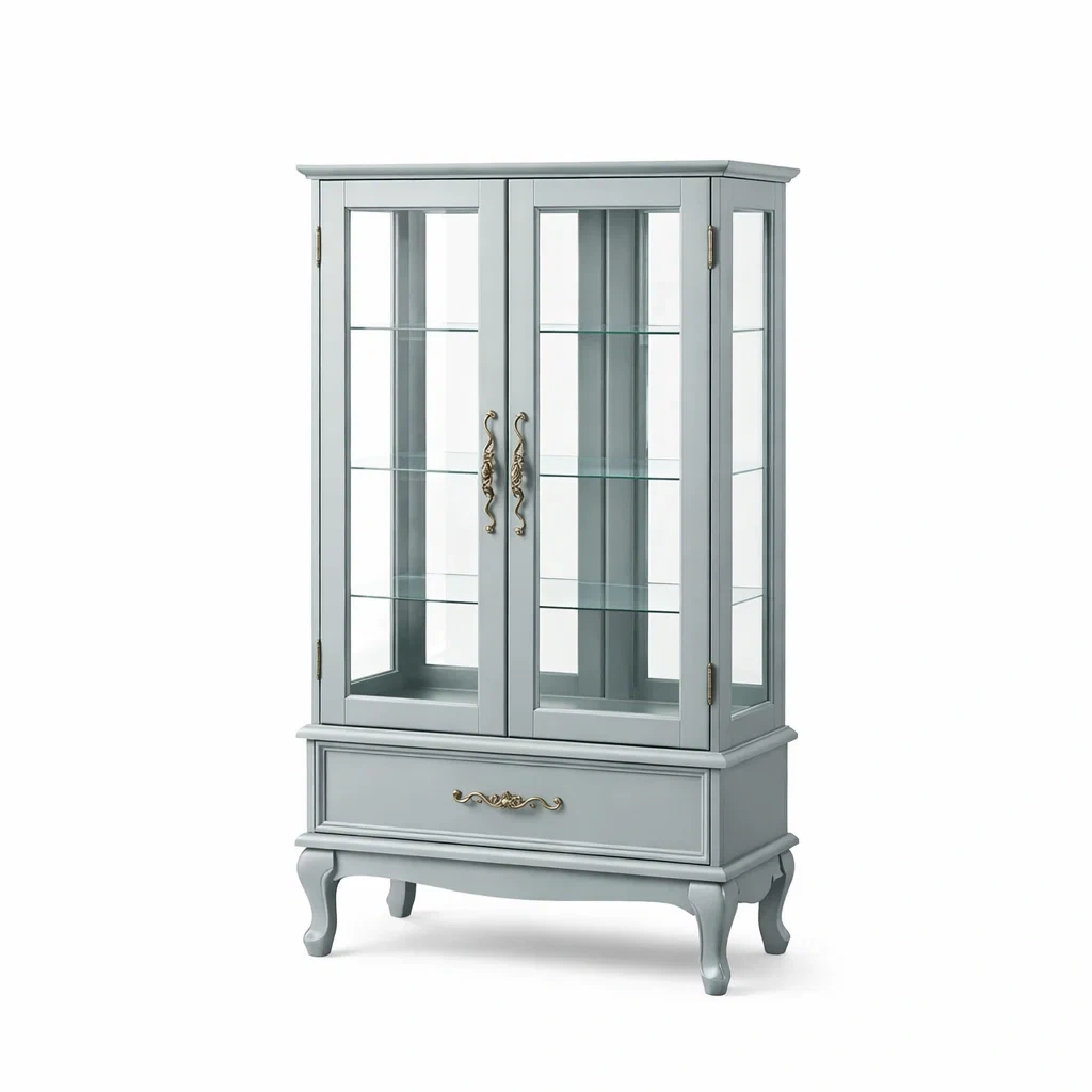 Vitrine en bois MDF et verre trempé gris